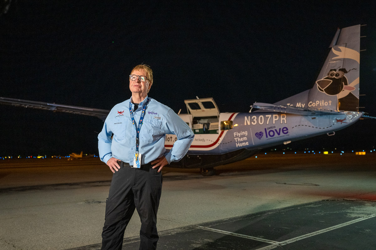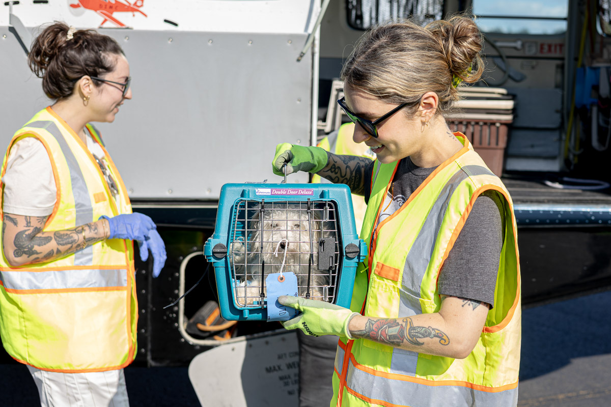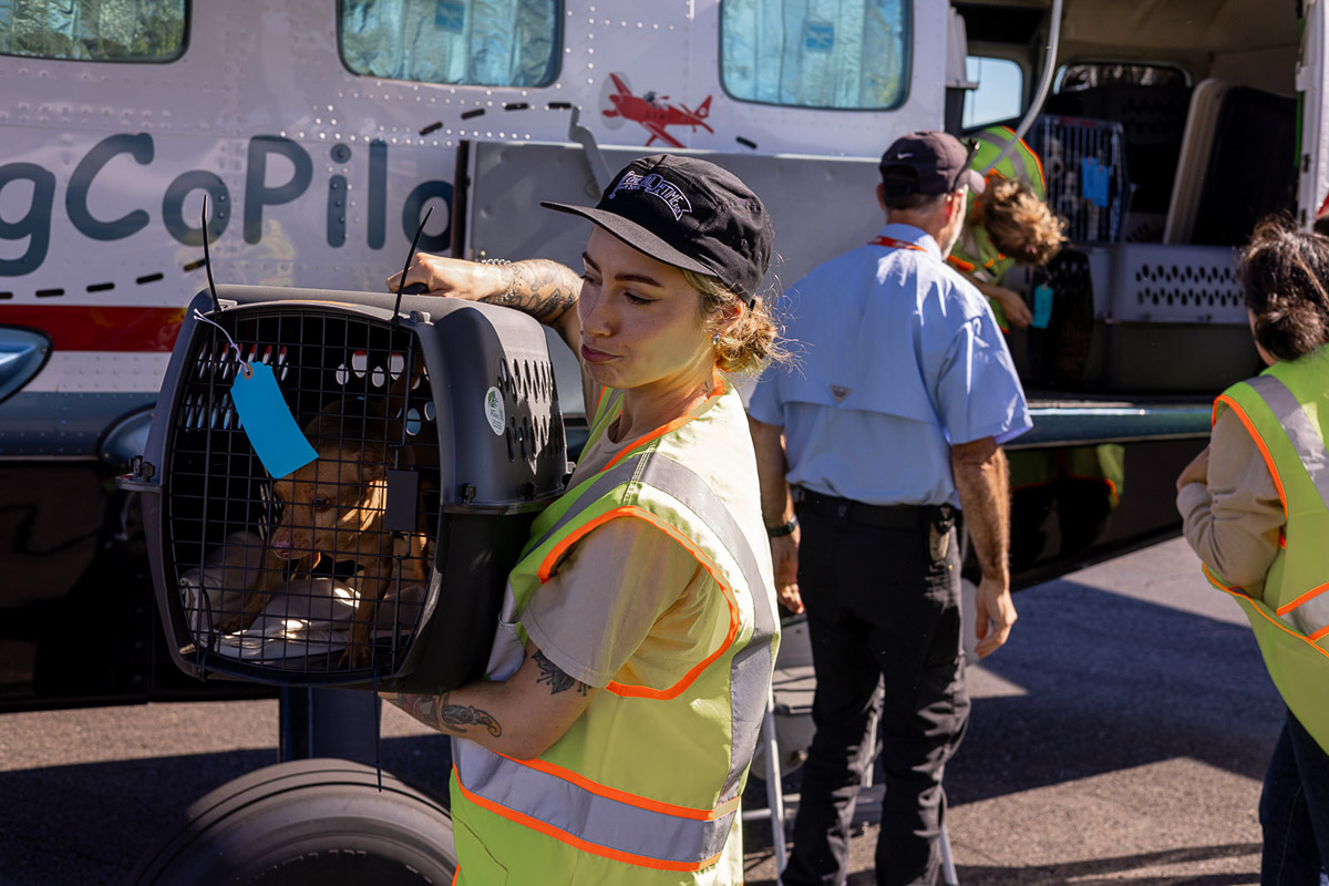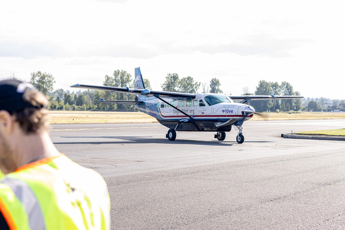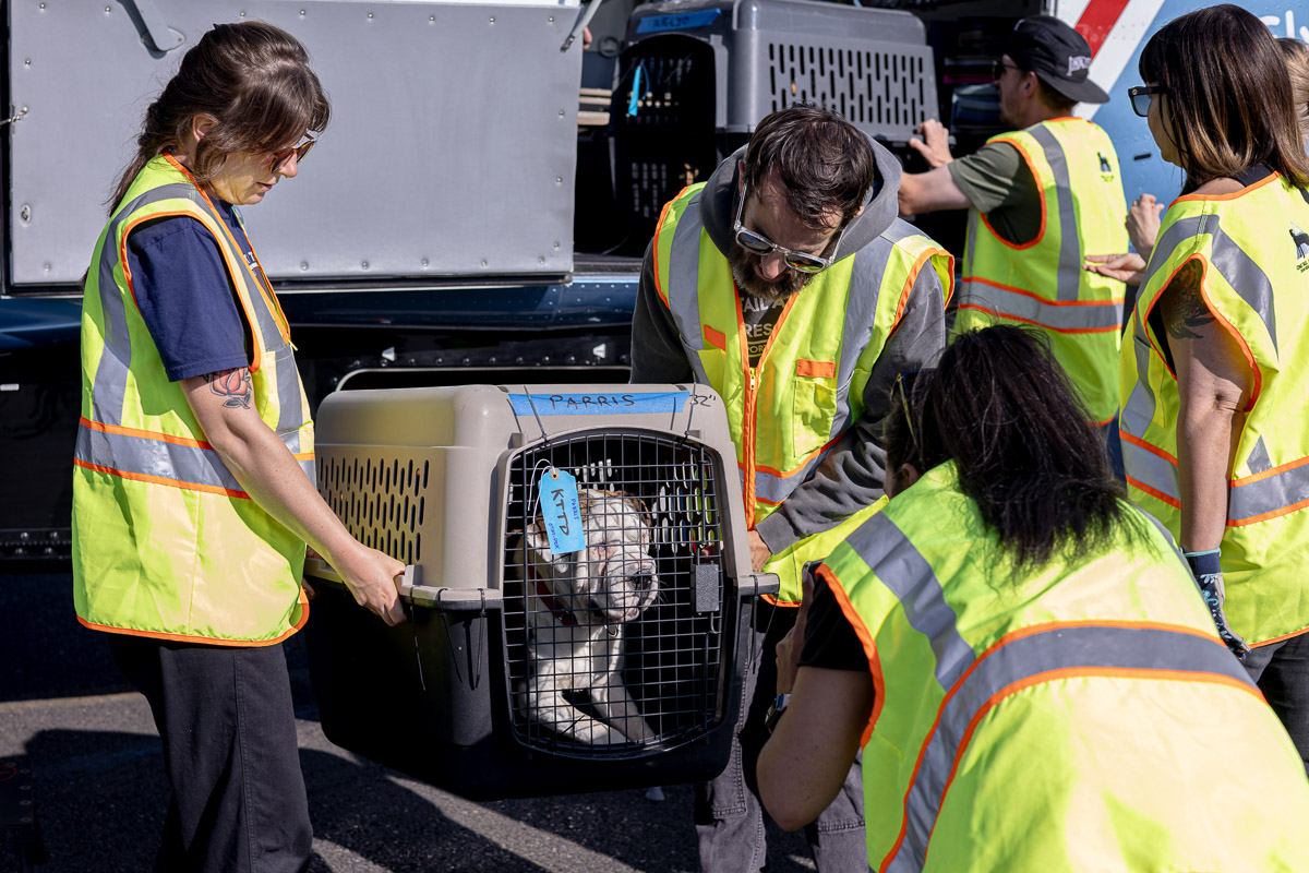 On Saturday, October 4th, the Driggs Reed Memorial Airport was buzzing with joy as a Dog Is My CoPilot (DIMC) rescue flight landed carrying more than 60 dogs. The plane’s arrival marked a special celebration, DIMC received a $40,000 gift from Tito’s Handmade Vodka, the Vodka for Dog People, to support El Paso transport flights and DIMC’s Pilot Training Program.